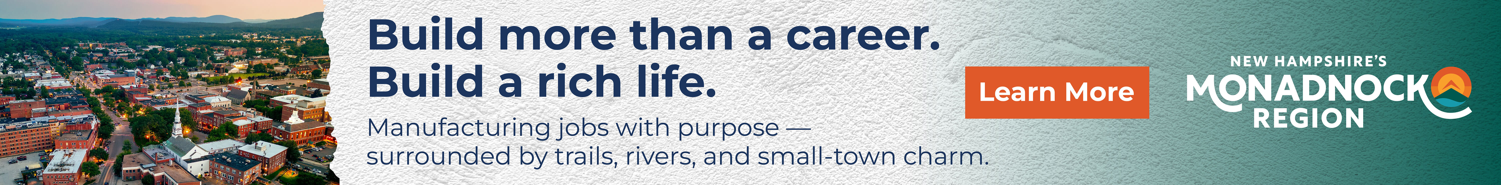 The first initiative is a manufacturing workforce marketing campaign with a total investment approaching $240,000. Developed in partnership with regional employers and Sentinel Solutions media agency, the campaign, called “Build a Rich Life,” is running advertisements across multiple digital platforms throughout New England, promoting the opportunity to live and work the Monadnock Region. The campaign responds to a long-standing workforce shortage identified by regional employers, particularly in manufacturing, that has limited growth and competitiveness across the Monadnock Region.
