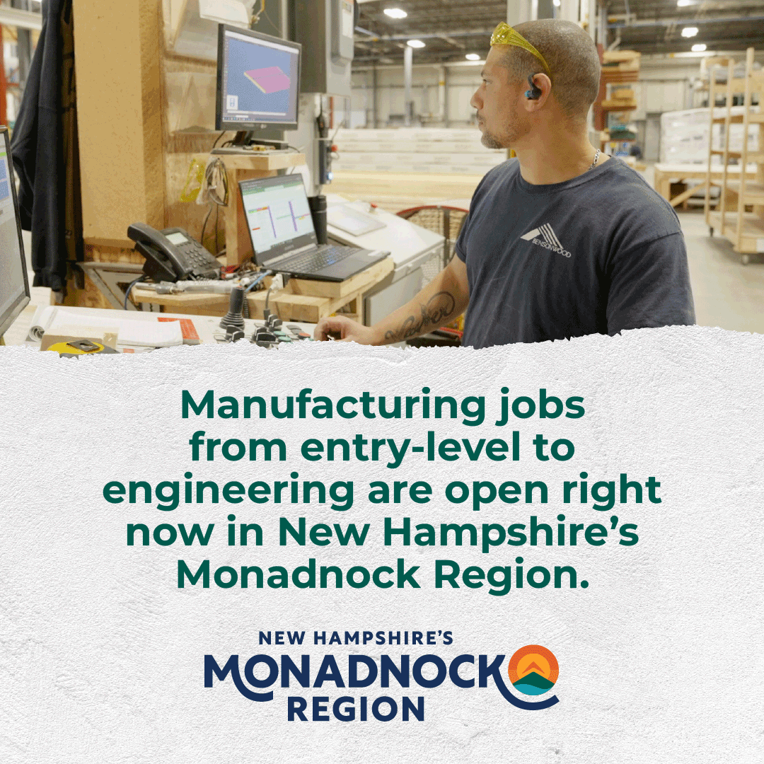 Central to the campaign is a dedicated landing page: www.monadnocknh.com/work-here/manufacturing/ — designed and built by Keene marketing agency Communicators Group, where job seekers can submit their resume once, which is then shared with all participating manufacturing employers. Users can also opt in to have their resume submitted to Masiello Employment Services, further expanding their employment opportunities. The campaign, which was launched in late December 2025, has already had more than 750,000 impressions, driven more than 10,000 visitors to the manufacturing page where more than 120 people have submitted their resume.